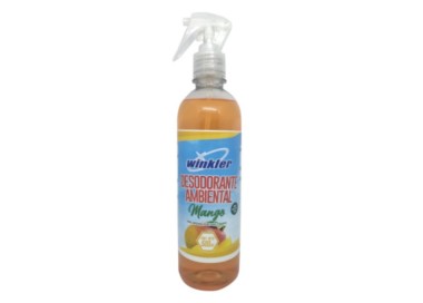 El Desodorante Ambiental Mango WK-010M Winkler – Envase 500 ml con gatillo es un desodorizante y aromatizante ambiental de base alcohólica, formulado para eliminar malos olores y reemplazarlos por un aroma mango fresco, agradable y persistente. Gracias a su rápida evaporación, es ideal para ambientes cerrados o de alta circulación de personas, proporcionando una sensación inmediata de limpieza ambiental. Recomendado para uso institucional, comercial y doméstico, permite una aplicación práctica y controlada mediante pulverización directa.